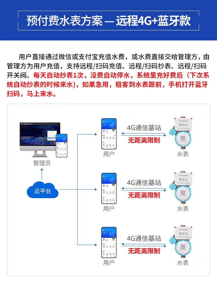 3.4G無線閥控預(yù)付費智能水表用水控制