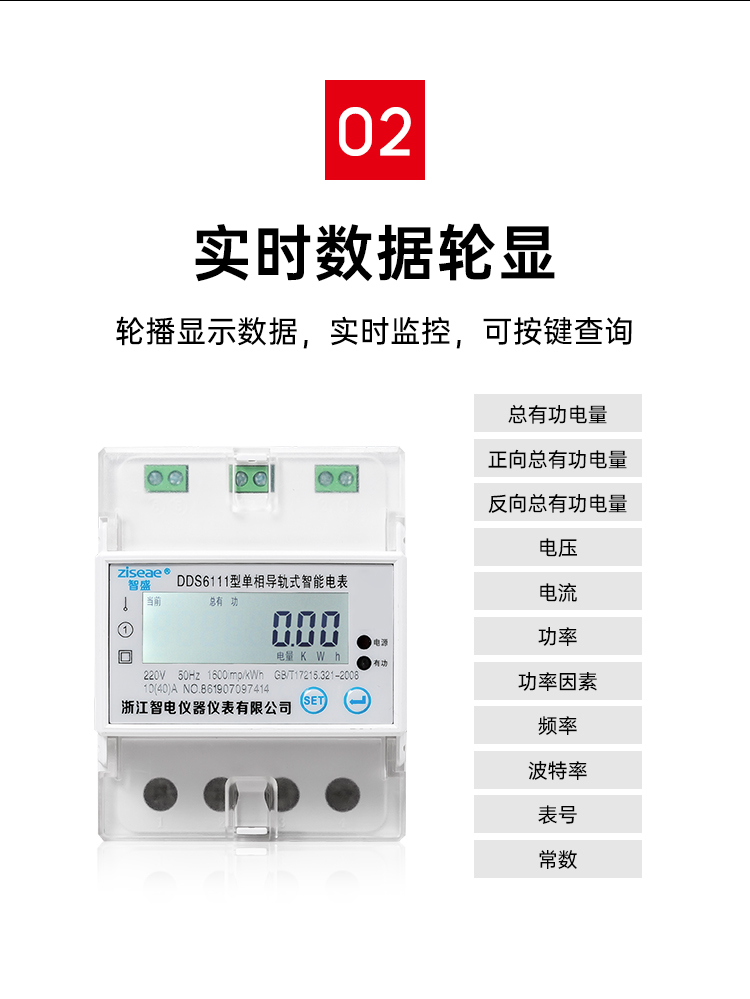 2、采用高品質(zhì)計度器顯示累計電量(6+2位),顯示清晰鮮艷直讀性好。