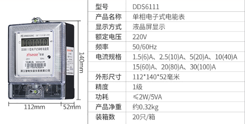 DDS6111型單相電子式電能表,由于采用集成電路和SMT制造工藝,使之測量準(zhǔn)確度,穩(wěn)定性等均得到了可靠保證.適用計(jì)量額定頻率為50Hz,額定電壓為220V的單相交流有功電能.
