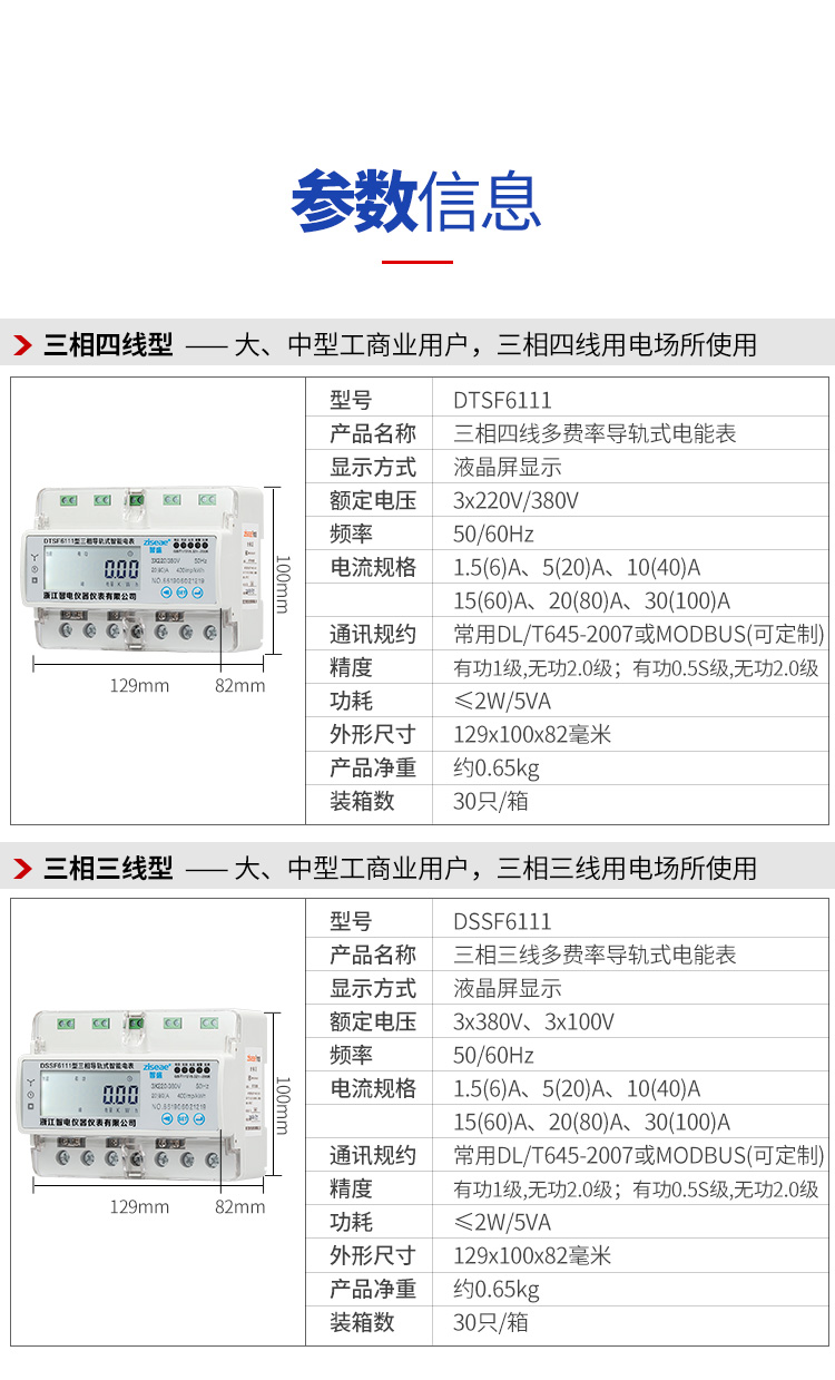 2、三相導(dǎo)軌式多費(fèi)率電表品牌主要規(guī)格及技術(shù)參數(shù)