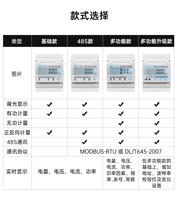 6.通訊功能:具有RS485通訊功能,可用連接RS485通訊網(wǎng)絡(luò)進(jìn)行遠(yuǎn)程抄表和集中管理,標(biāo)準(zhǔn)配置通訊協(xié)議支持DL/T645-2007或Modbus-RTU協(xié)議